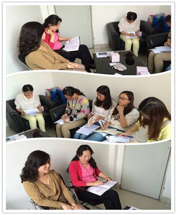 2015年5月5日下午,在教科室的组织下,刘丹丹老师和梅丽老师的带领下,青蓝之家的青年教师赛课反思开始了。